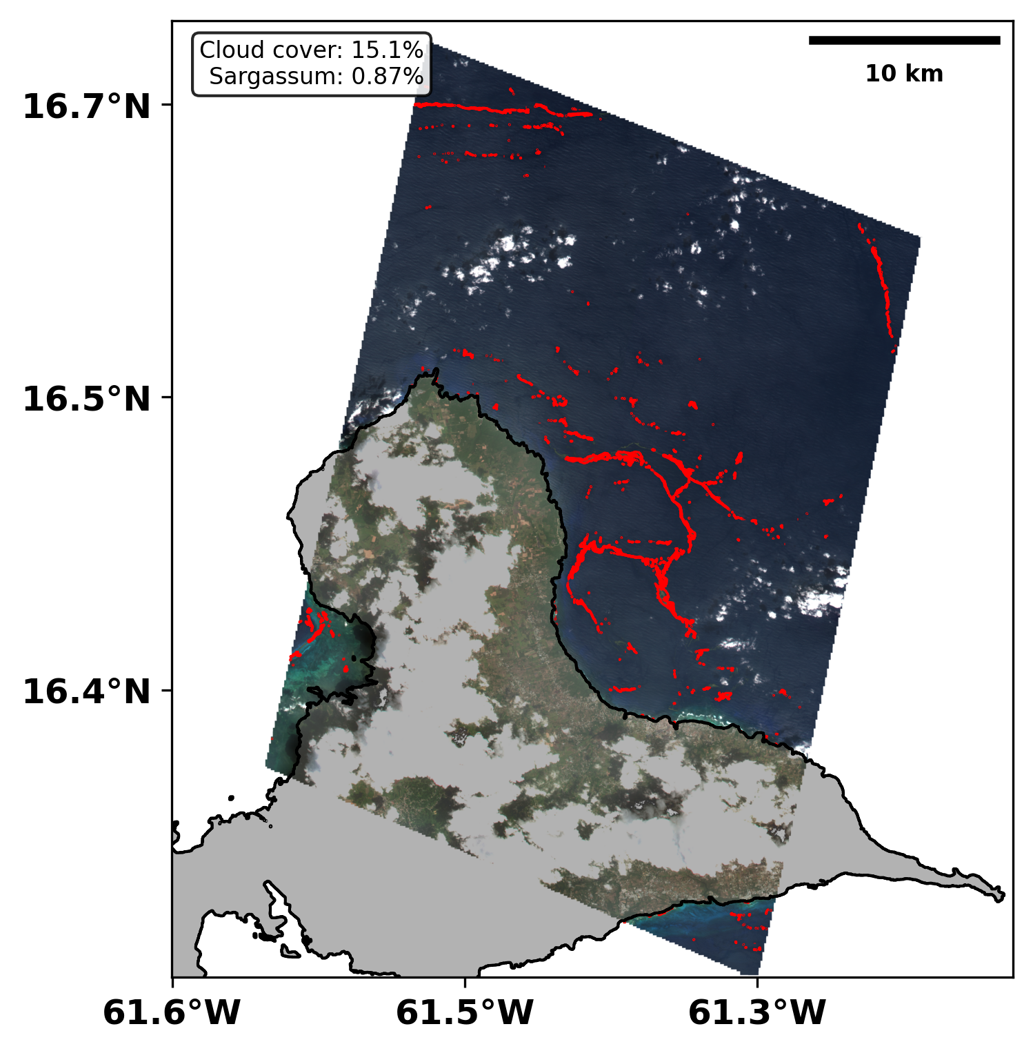 - Pitek L., Brilouet P.-E., Jouanno J., Graffin M., 2026. High-Spatial- and -Temporal-Resolution Sargassum AFAI Coastal Dataset for Guadeloupe, Martinique and Yucatán. Remote Sensing, https://doi.org/10.3390/rs18040624